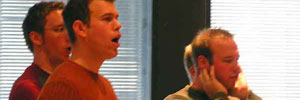 I'm just reading Suzanne's post from this week about the Endellion Quartet's ways to play together as musicians and still remain good colleagues. Now multiply the four musicians from the quartet by 3 to get the 12 musicians traveling as Chanticleer! Basically, anytime Chanticleer arrives in the studio, it's as good as a party...only with really excellent singing. (more)